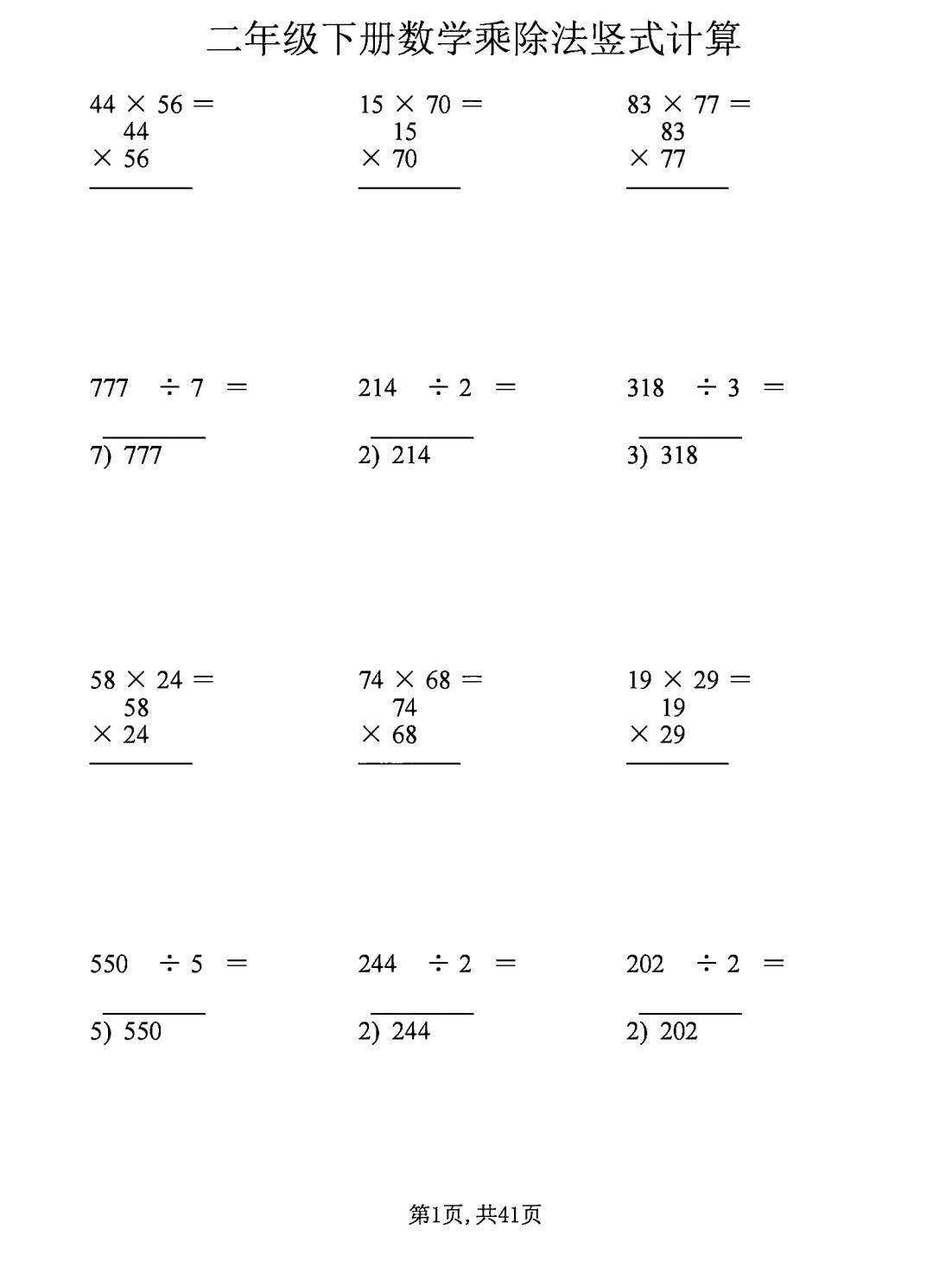 小学二年级数学竖式计算题200道二年级数学题竖式计算,孩子暑假学习不掉队二年级数学题竖式计算!需要完整版二年级数学题竖式计算的同学可以再文末获取链接下载!*部分内容预览 完整版请下载*二年级数学题竖式计算;领2年级上册数学竖式计算专项练习回复英语期中,领36年级 PEP英语 期中试题及参考答案回复笔记,领16年级部编版课。