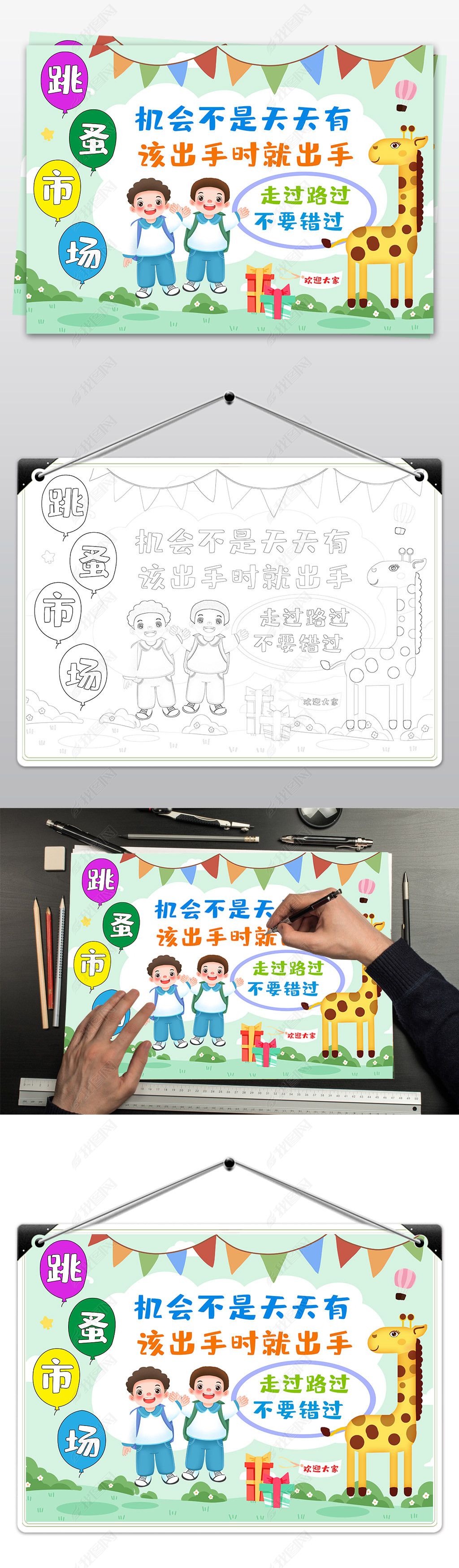 小摊位·大智慧长庆社区儿童跳蚤市场为丰富辖区青少年儿童跳蚤市场手绘海报的寒假生活儿童跳蚤市场手绘海报,让孩子们初步感受到市场经济学会认识货币学会推销购买。