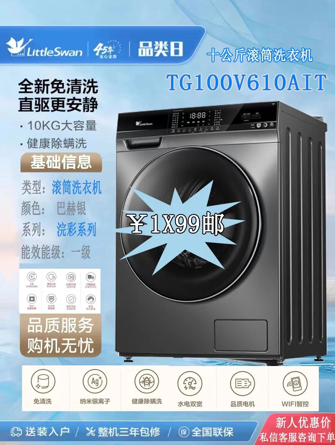 小天鹅TG10V628T性价比天花板款这款滚筒洗衣机可以说是“小天鹅的隐藏王者”别看它价格只有2000元出头,配置一点都不。