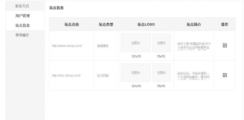 第三步:进入站点属性设置页面,点击“操作”按钮,上传网站logo并完善站点信息: