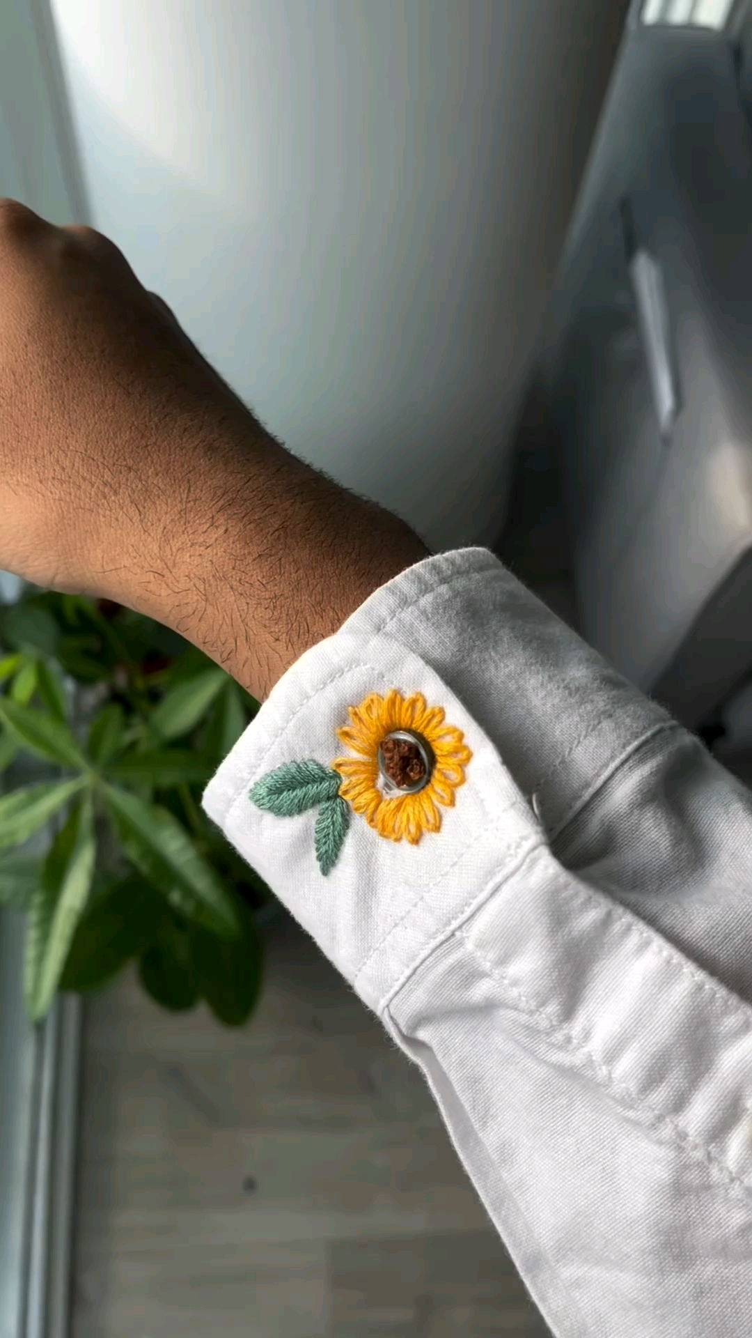首先固定针线在底布上缝个十字花,线就牢牢的固定住了然后套上扣子,还是按照十字花的方法钉扣子,针线放宽松,不要钉紧 上边一步放松了线,所以现在请轻轻拉起扣子,把针绕着拉起的线绕几圈绕几圈之后把针穿过线扎过去,然后再扎入底布 通过以上四步,扣子既能牢牢的定住,又有一定的高度扣起来比较灵活 为了更加牢固可以再按如上步骤重复进行几次。