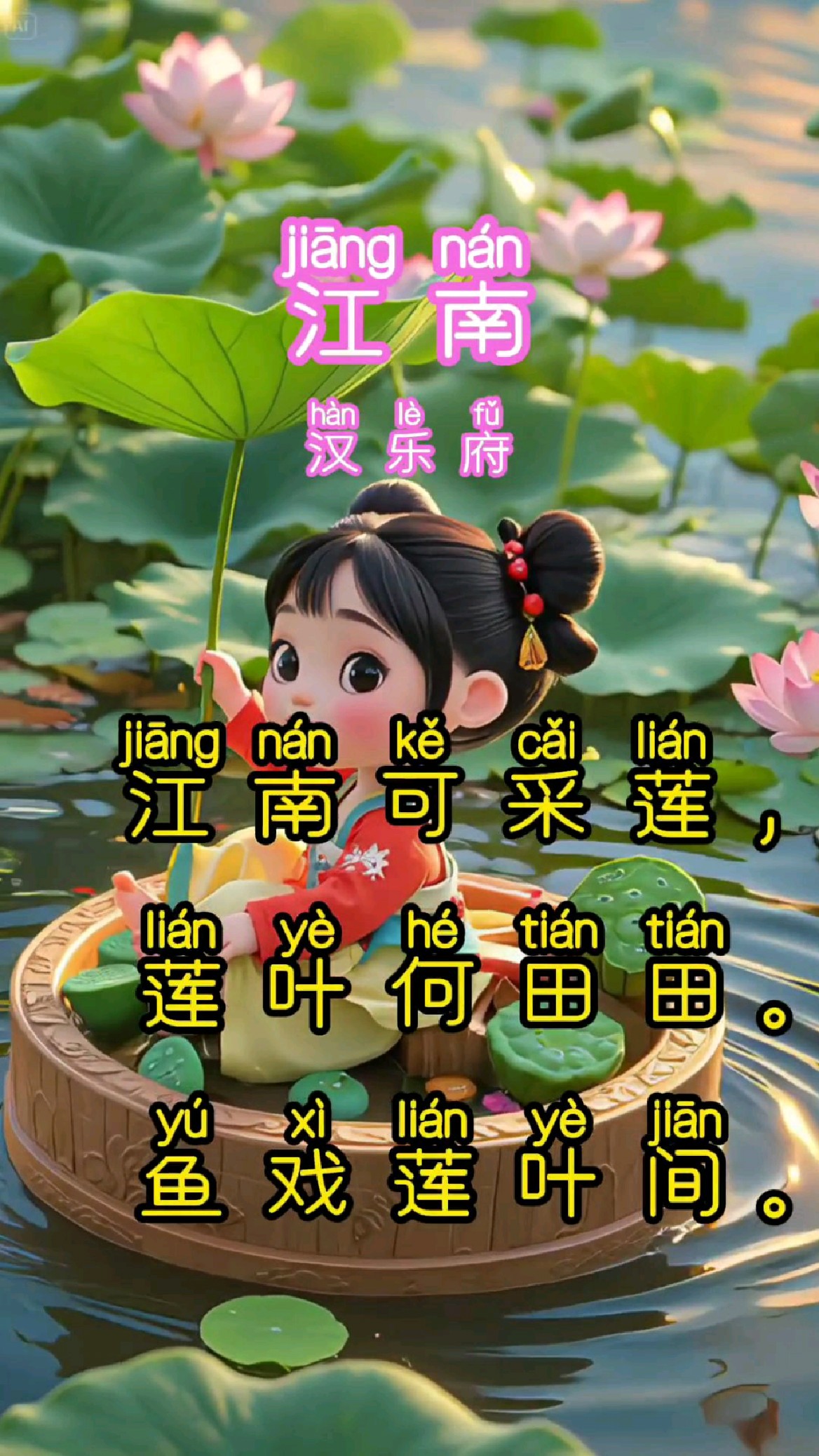 江南汉乐府 江南可采莲江南汉乐府,莲叶何田田,鱼戏莲叶间鱼戏莲叶东,鱼戏莲叶西,鱼戏莲叶南,鱼戏莲叶北注释田田荷叶茂盛的样子江南汉乐府;好了小朋友们我们再来复习一遍汉乐府诗江南江南汉乐府江南可采莲,莲叶何田田,鱼戏莲叶间鱼戏莲叶东,鱼戏莲叶西,鱼戏。