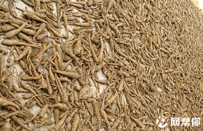 4、通常用烘炕进行熏硫,将白芷用草包或麻袋盖严,每500千克鲜白芷需约3,5~4千克硫磺,熏时要不断加入硫磺,不能熄灭,直至熏透。约熏一昼夜后,取样用小刀切开,在切口涂抹碘酒,若蓝色很快消失即表示硫以完全熏透,可停火,若蓝色不消失,再继续,熏后抓紧晒干。包装存于干燥通风处,每公顷可收干白芷3750~5250千克,高产田达7500千克。
