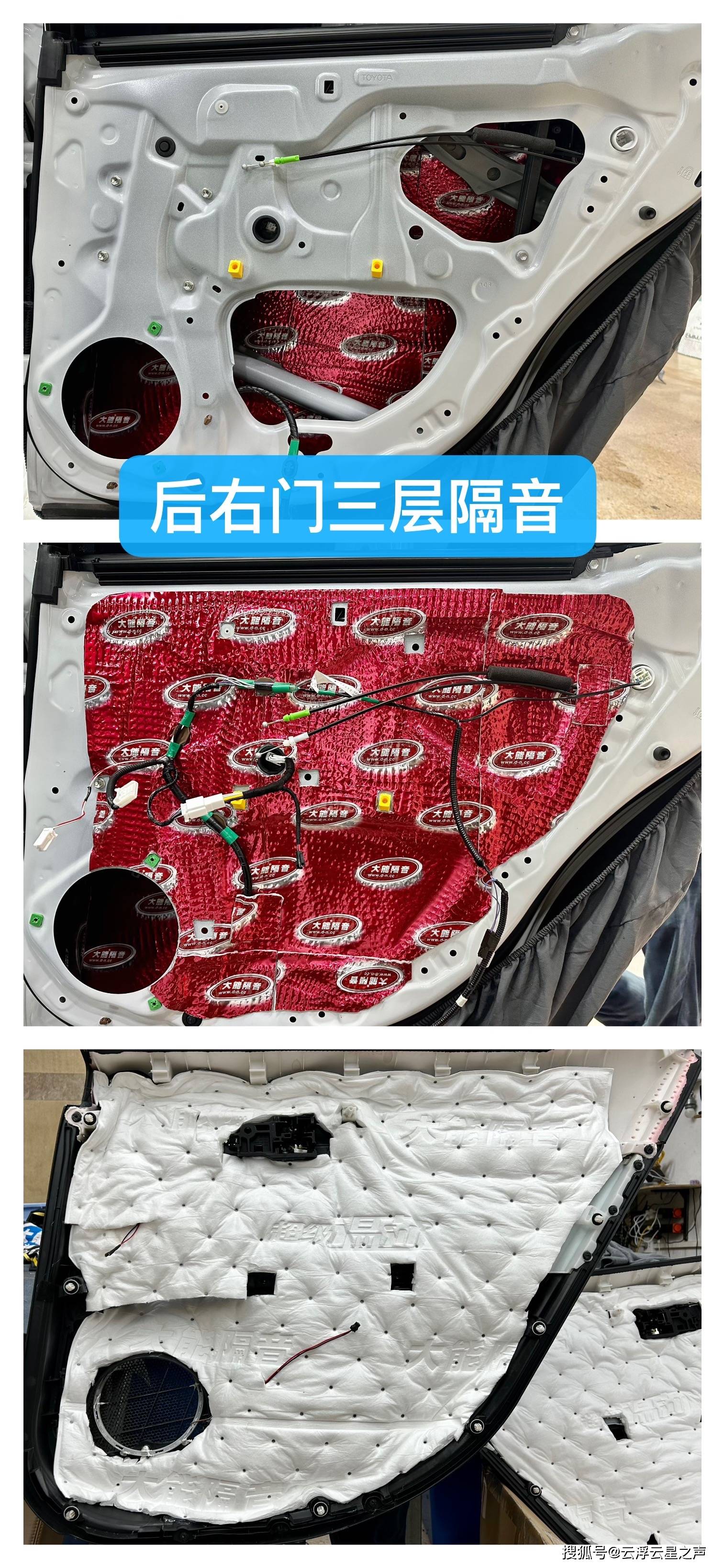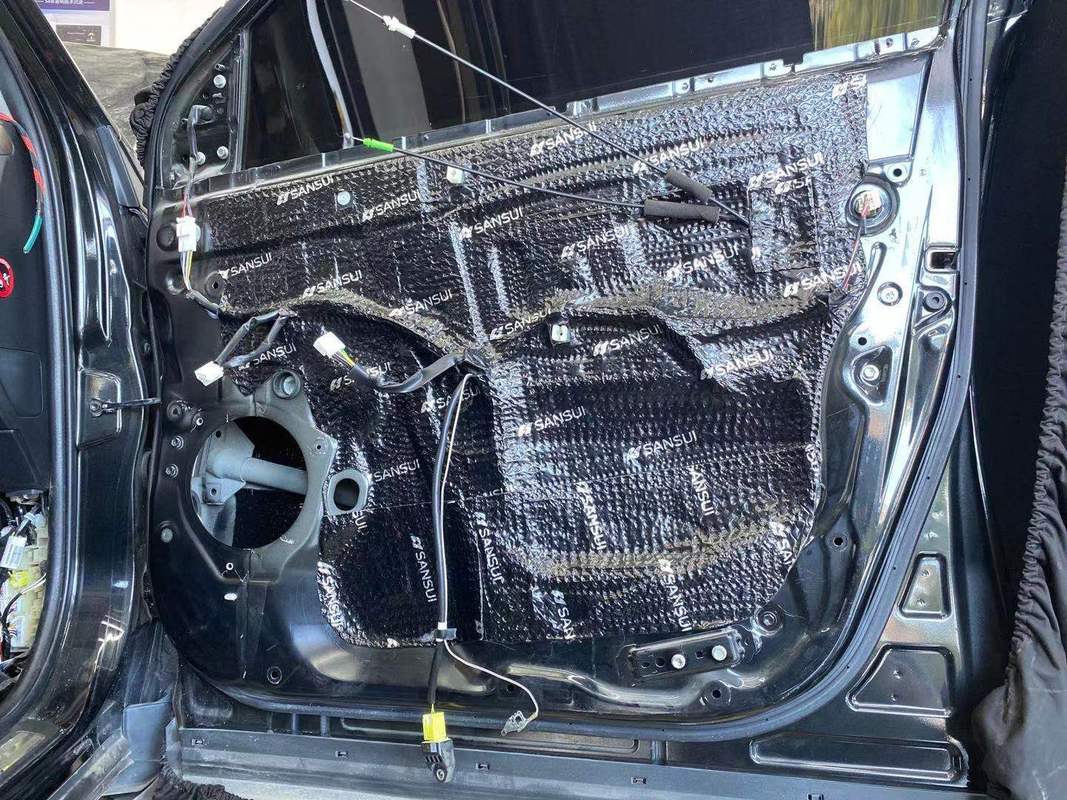 无法使车门内的空腔效应完全解决车门饰板内侧贴上化纤隔音棉吸收车门硬质隔音板带来的震动,尽可能减少异响原车件和改装后。