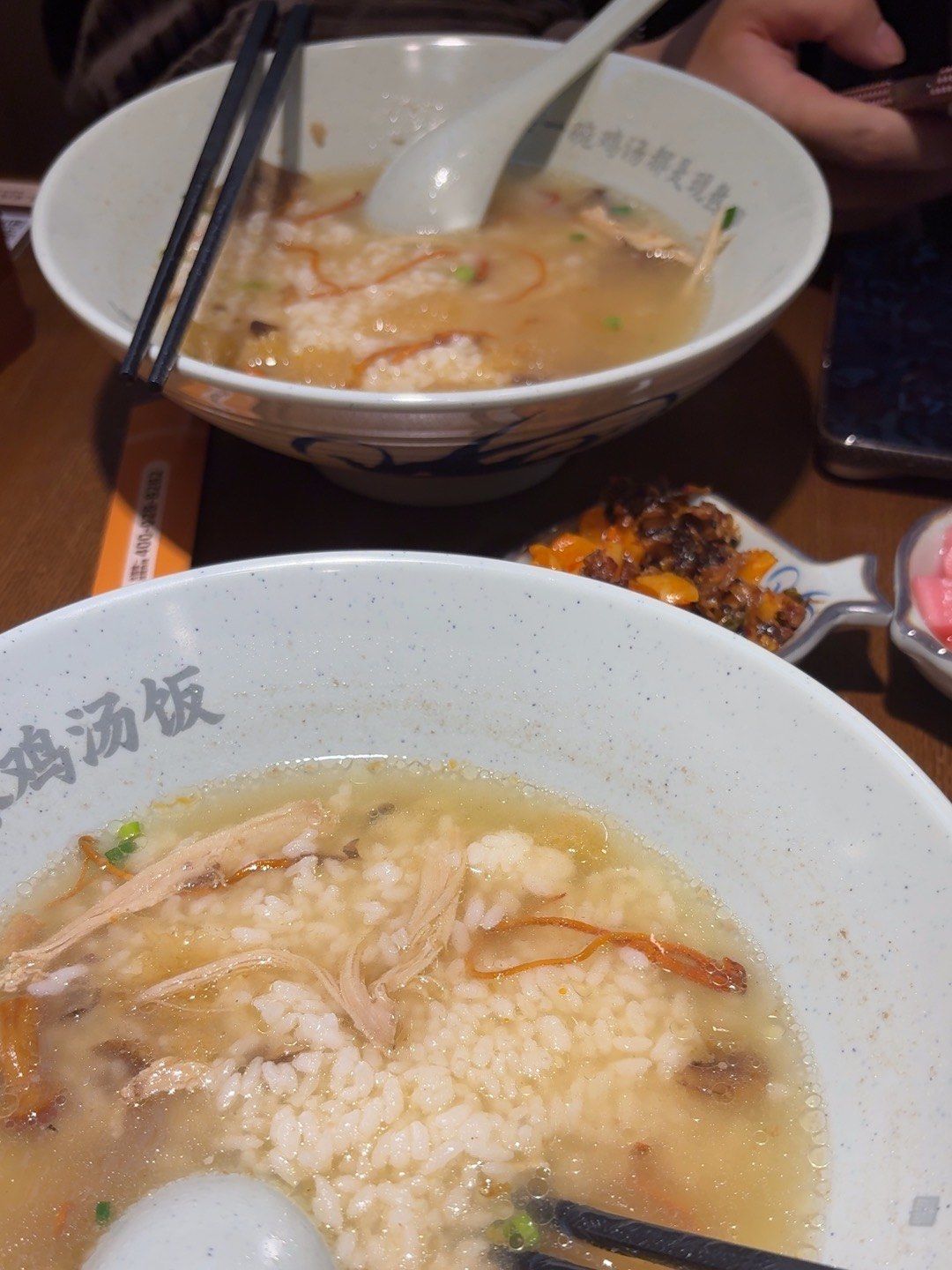 2、烫饭有牛肉和排骨两种味道米饭和汤煮好再混煮,将米饭和汤的味道完美融合,米饭粒粒饱满,裹着浓浓的汤汁,吃上一口,简直销。
