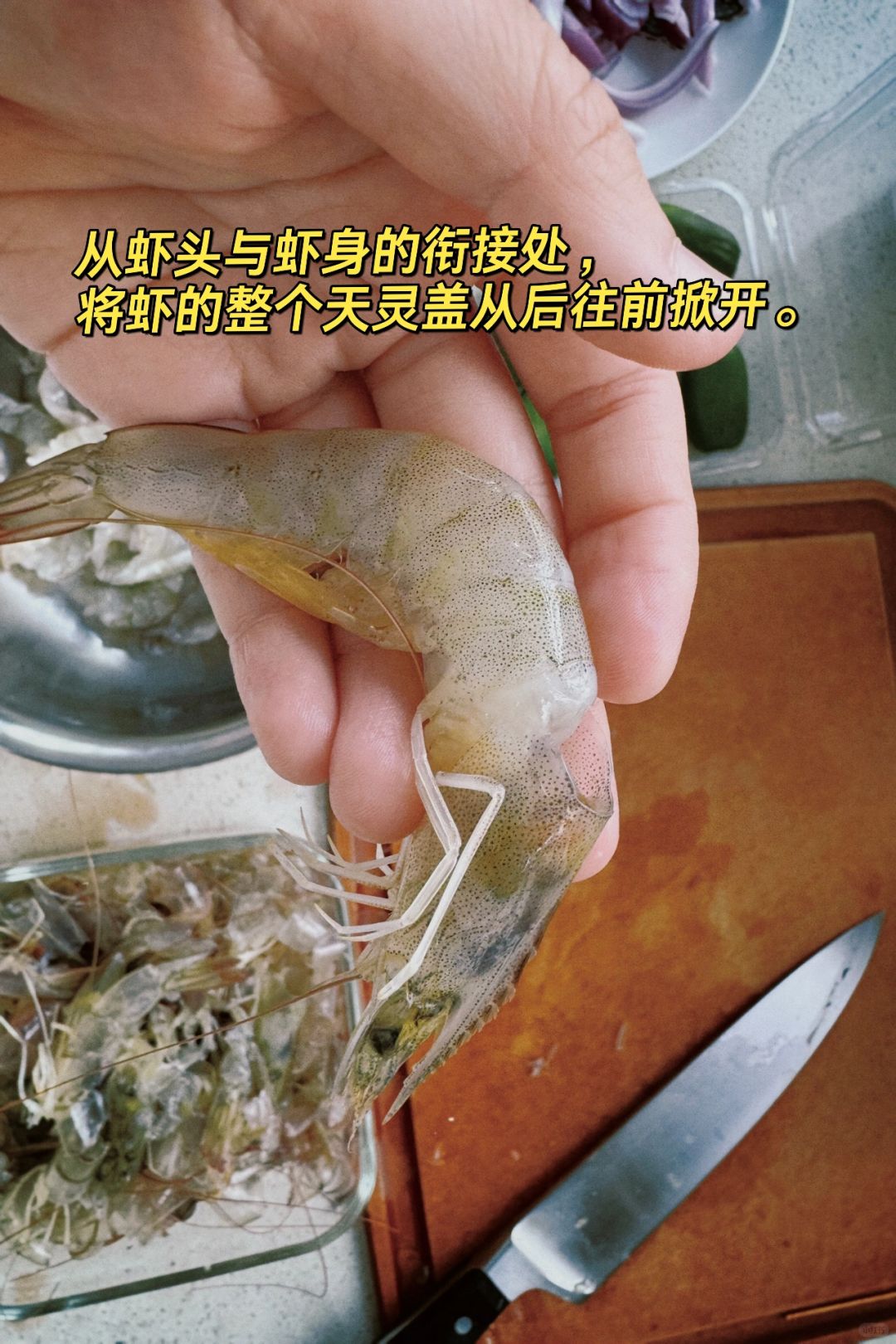 首先,借助在大部分超市可以买到去虾线器,就可以轻轻松松去除虾线1剥下虾腿如果虾头还在,把虾头也去掉2捏住虾身靠。