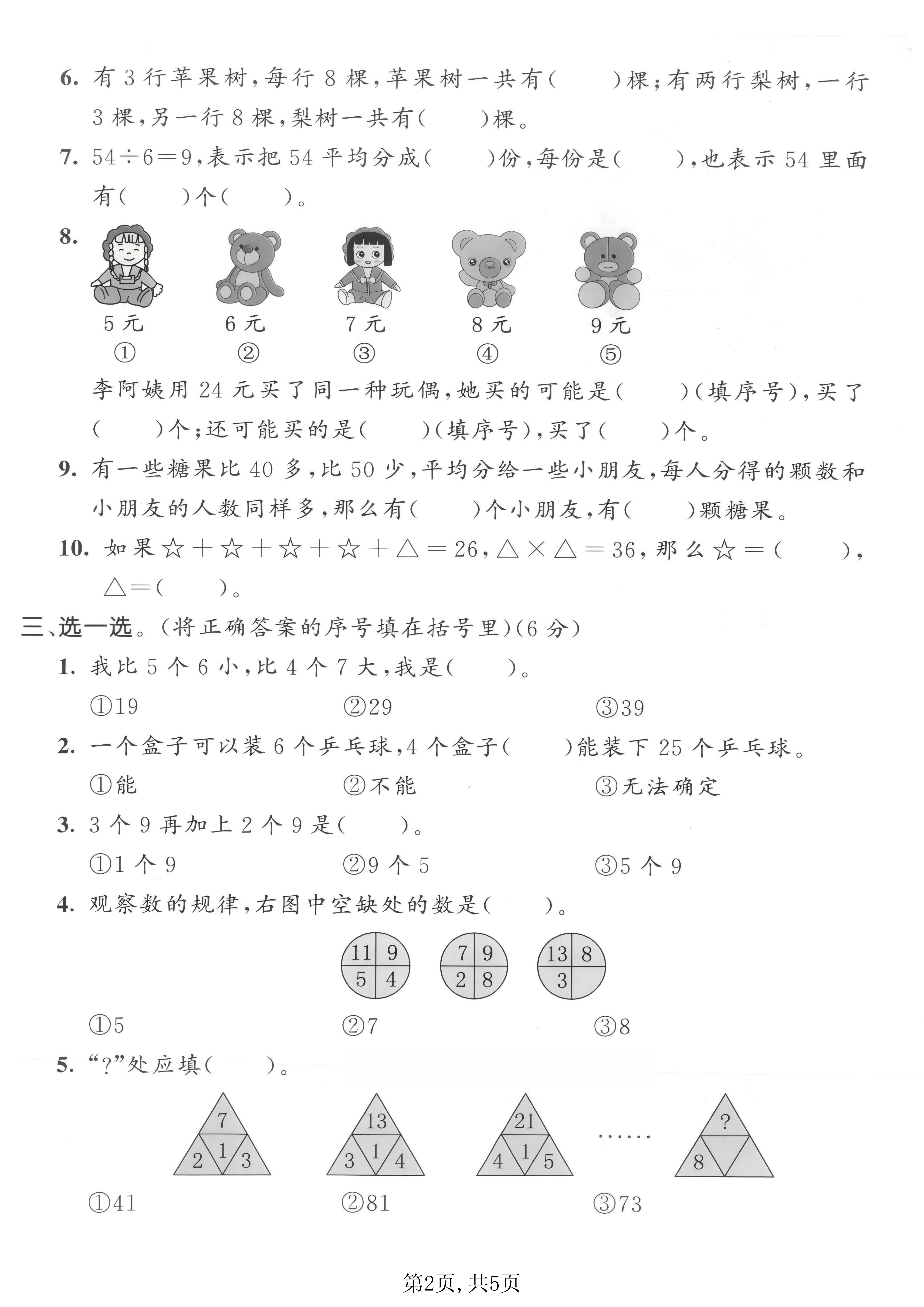 1 在有余数的除法里,被除数余数÷商=除数 2 除数是两位数的除法,如果有余数,余数最大是98 3 在一道有余数的除法里,余数是36,除数最大是37 5 在“献爱心”活动中,光明小学二年级三个班捐款情况如下表 班级 一班 二班 三班 人数 43 42 45 捐款数元215。