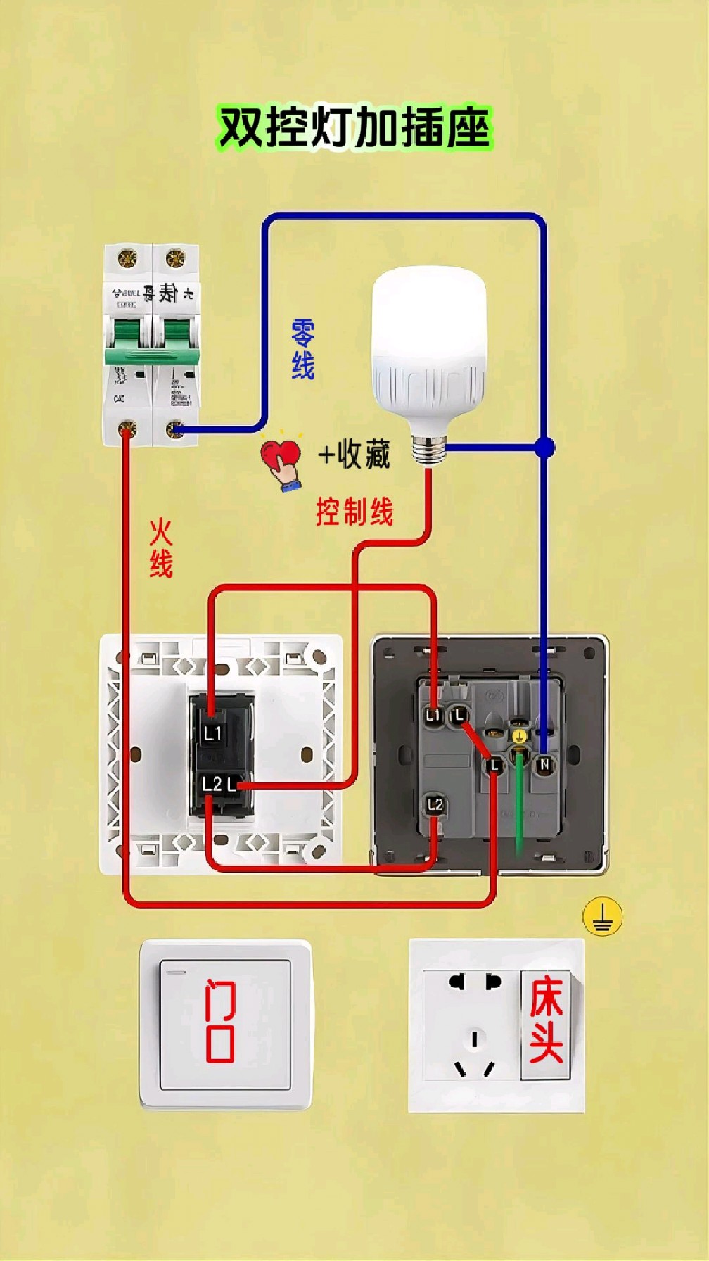 两端一个开关控制一个灯具,接线图及开关图如下。