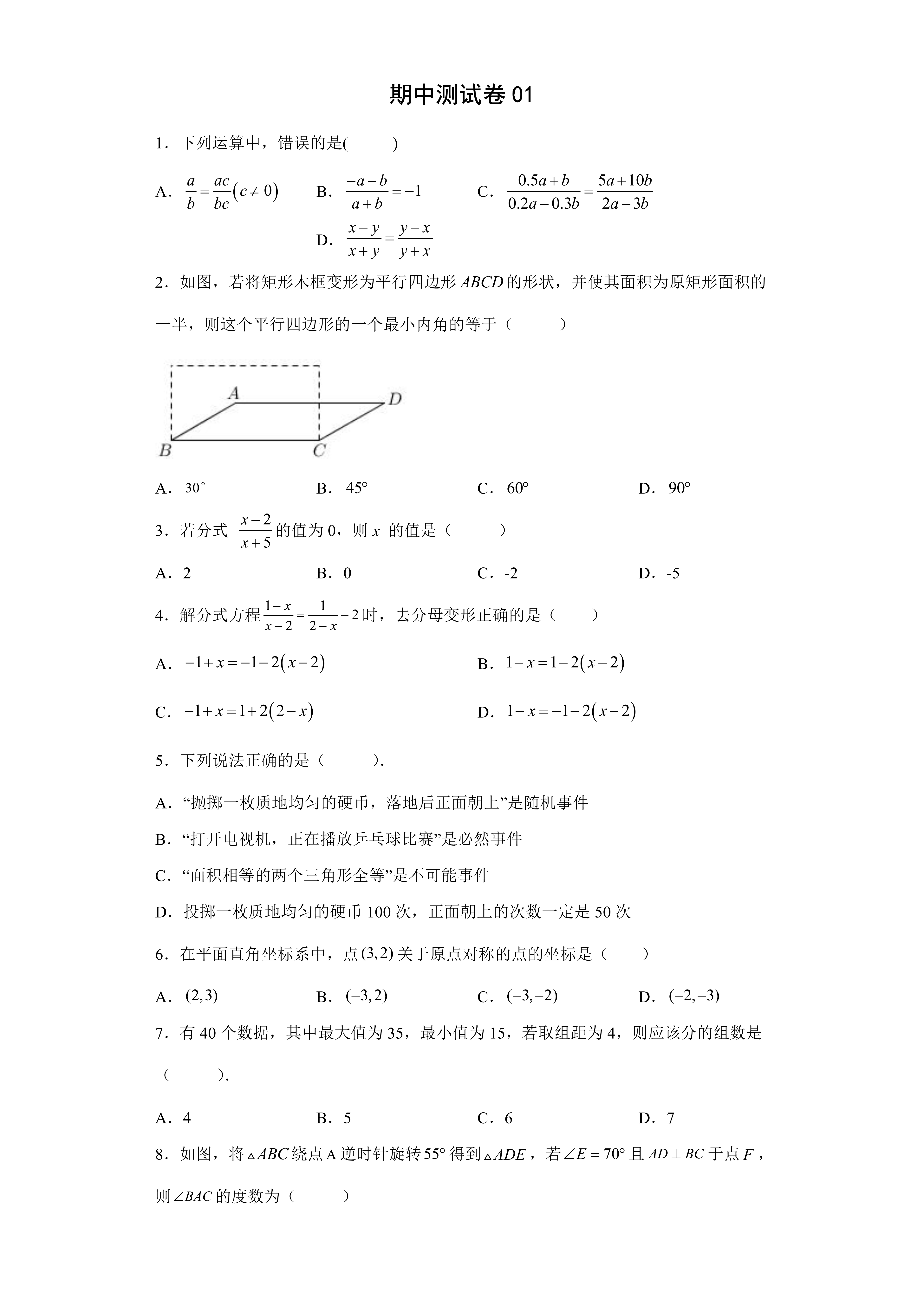 数据分析基础能力面试题统计学问题Q1解释一下中心极限定理答案中心极限定理是指在一定条件下,大量相互独立的随机变量之和的分布趋近于正态分布无论原始变量的分布形态如何,只要样本量足够大,其均值的分布都会趋近于正态分布Q2将3颗骰子各掷一次,记事件A为#34三个点数都不相同#34。