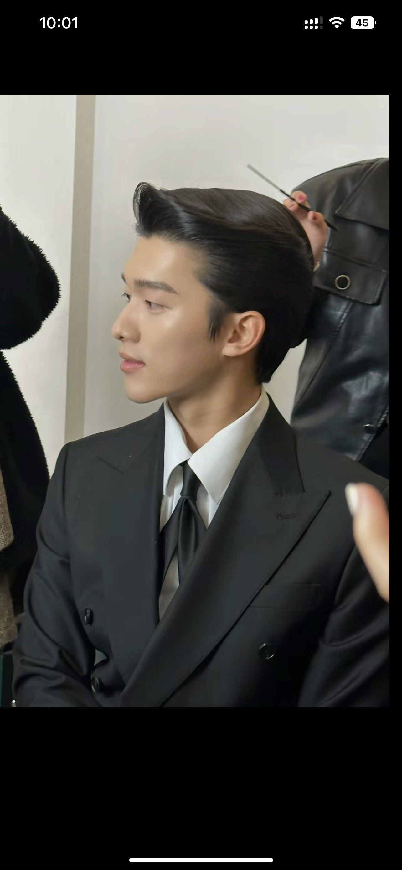 3、油头风格的整齐贴服的发型,搭配衬衣或者西装等服饰,衣服奶油小生气质,也是很不错的造型如果头发梳理的整齐但又很蓬松的话。
