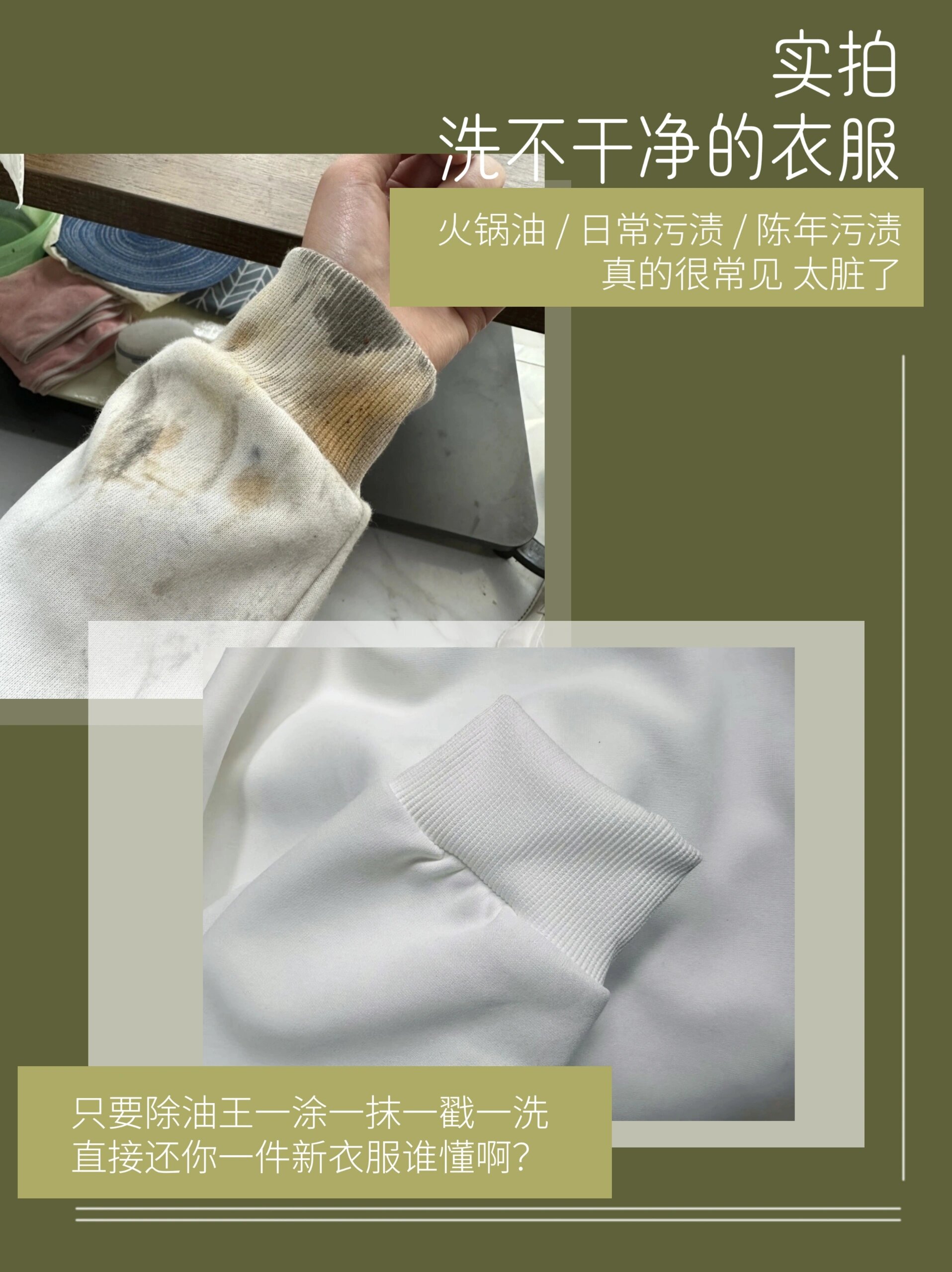 每次吃饭的时候,都会不小心把衣服撒上油点,尤其是白衣服! 安徽板面的汤汁炒菜的油污黄焖鸡的汤汁分别落在了我的白。