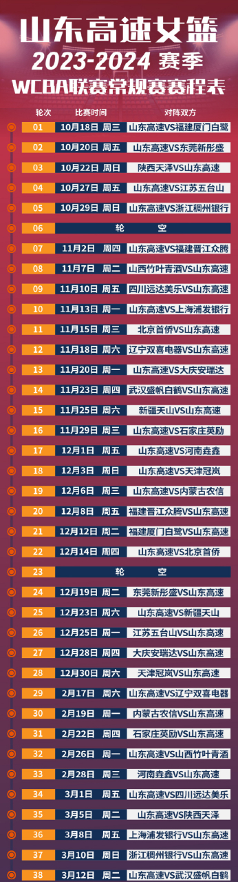 WCBA新赛季将于10月18日正式打响wcba赛程!陕西天泽首场比赛将于10月20日主场迎战辽宁女篮常规赛全部赛程如下陕西天泽女篮的全部。