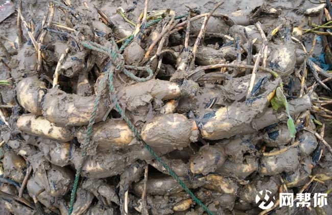 8、理顺藕头:莲藕在6月份时藕藤迅速向四周生长,要进行人工理藤,于中午时刨开泥巴拉起藕藤,转头理向空白地再埋入土中即可。