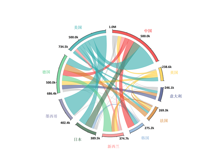 展示复杂数据的关联关系弦图非常适合分析复杂数据的关联关系,特别是双向关系以及数据的流动情况等通过弦图,可以直观地看到不同对象之间的连接和相互作用,从而更好地理解数据背后的信息和规律提升报告或文章的水准弦图作为一种美学上令人愉悦的展现方式,可以提升文章或报告的水准,使其更加专业和吸引人在需要展示复杂数。