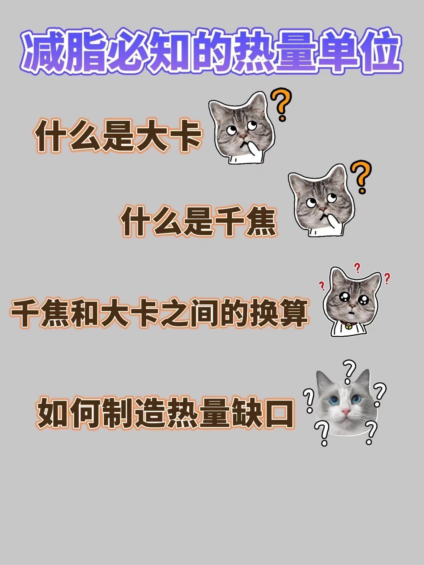 4、卡路里和千焦怎么换算?相信很多女生对卡路里并不陌生,甚至每 我们还常常从不同资料上看见大卡千卡焦耳等单位这种单位;而食物营养成分表上的单位是“千焦”,千焦和千卡的关系如下对于大部分人来说,也可以做如下简化来换算,会更容易一点我们。