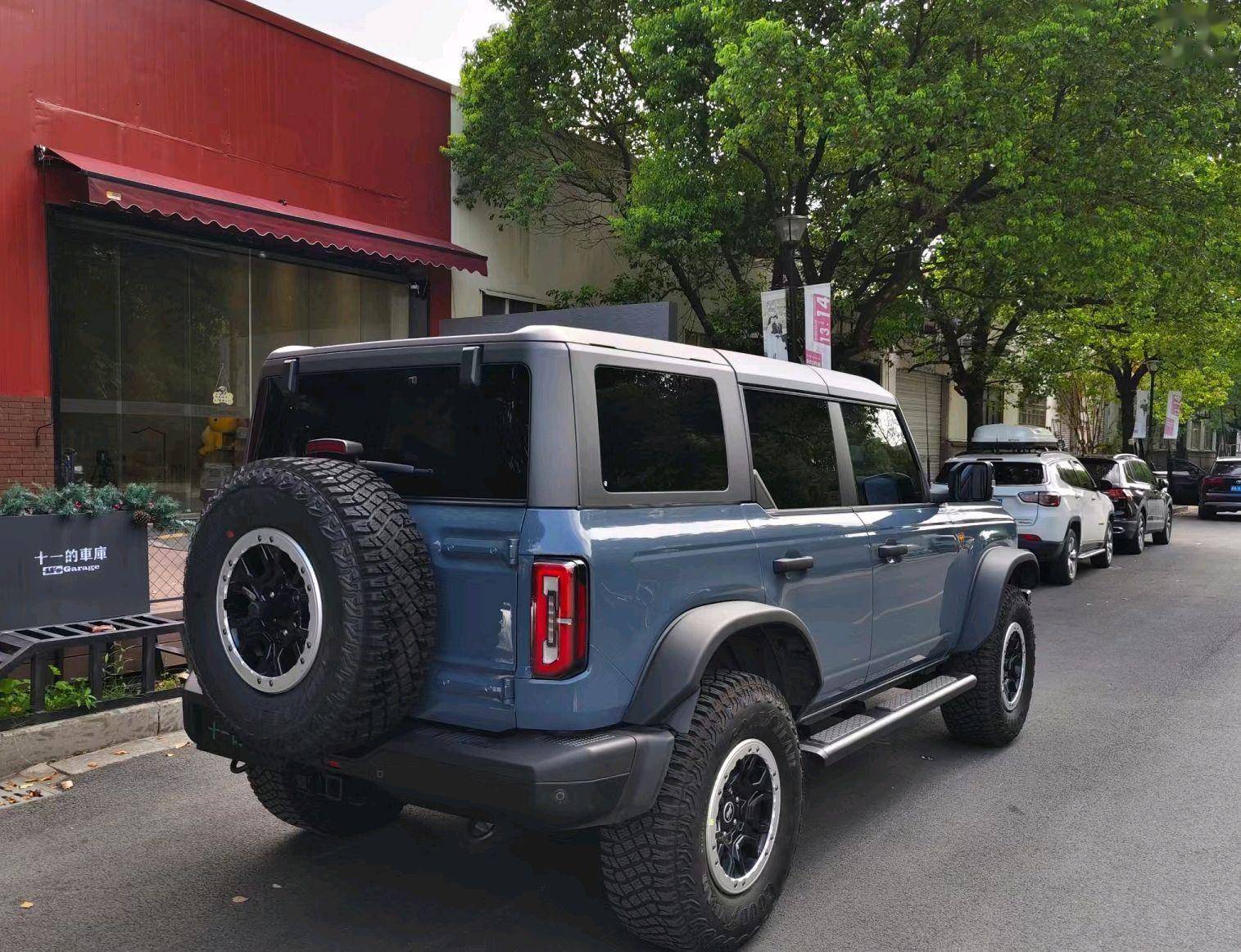 2、外观方面,福特烈马使用福特大越野了硬派越野的造型设计,方正的轮廓,搭配经典的圆灯,以及贯穿式“Bronco”标识外挂式的备胎设计,透。