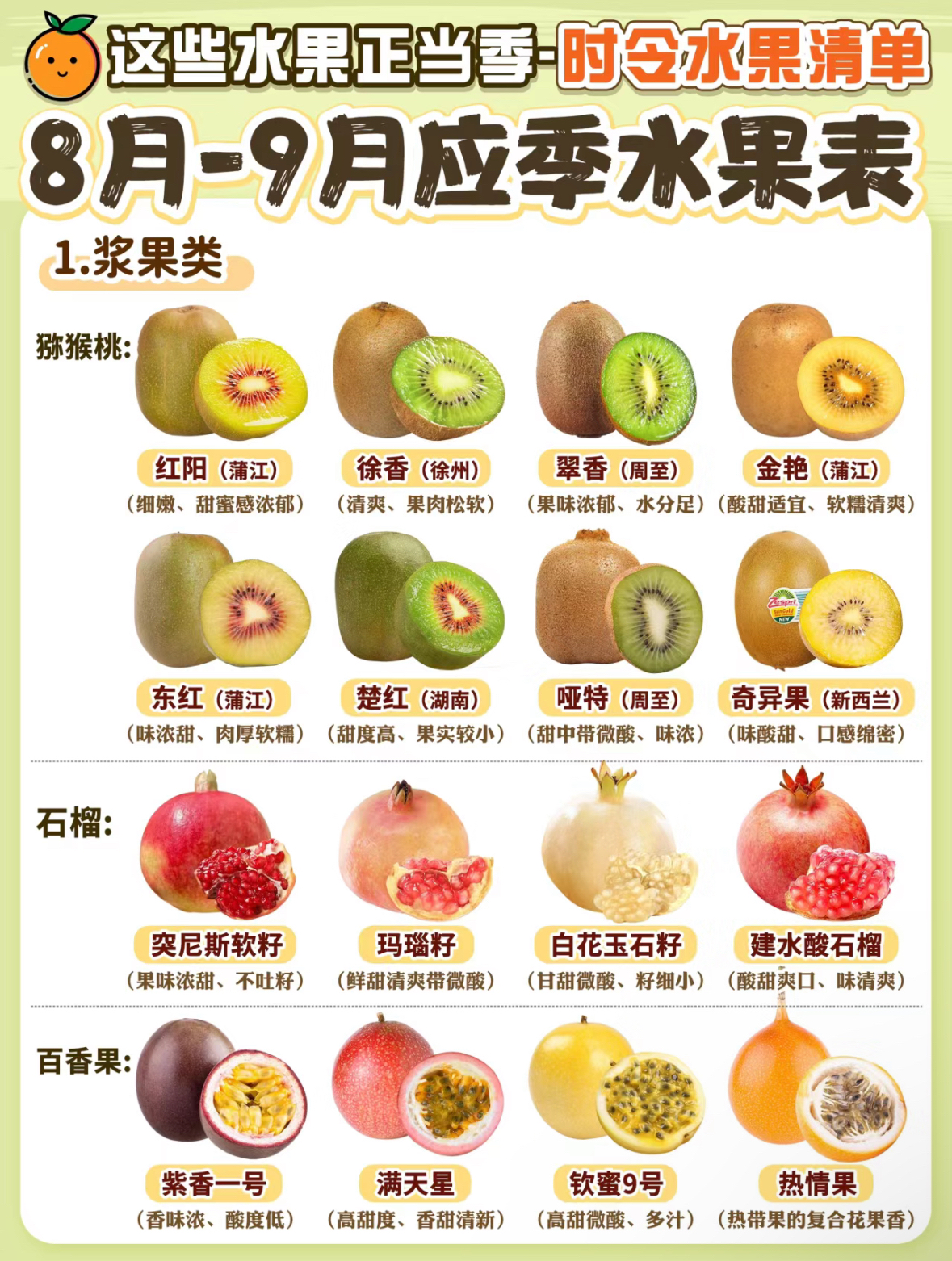 6、水果种类大全水果的种类有很多,水果依构造和特性可分为浆果瓜果橘果核果仁果五类,按味性分为寒性水果温性水果及热。